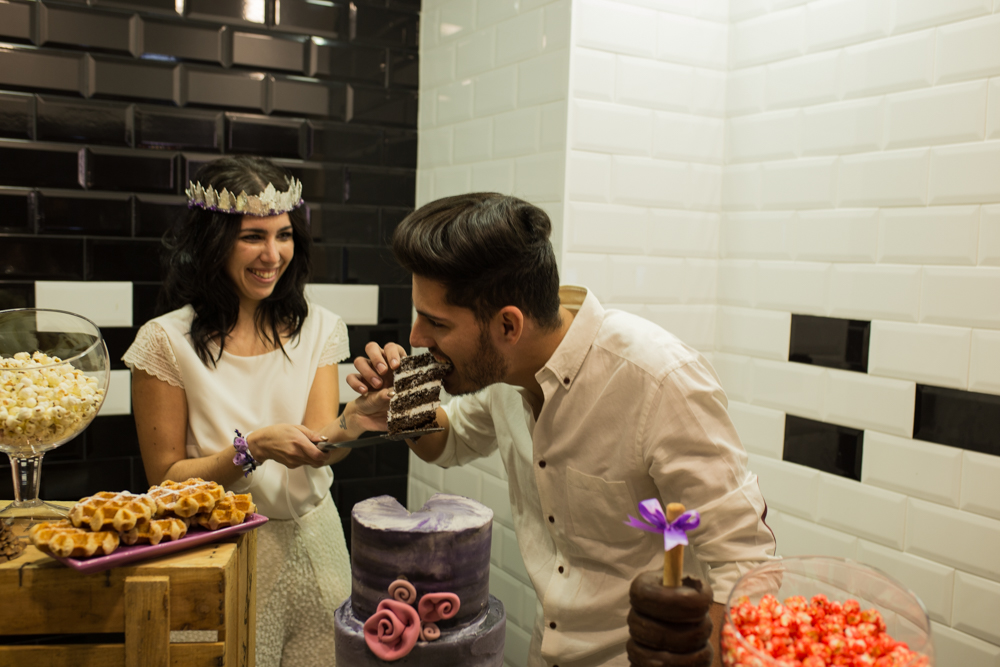 Para saborear ese momento, elegimos el espacio Ruta 77 para nuestro shooting. Allà quisimos reflejar unos novios cómplices, naturales y divertidos que quieren darle un bocado a la vida, tomar las riendas y celebrar la boda que mejor les define. Laura y Fran, nuestros modelos, supieron llevar esa idea a la realidad sin posados forzados, sin ataduras, siendo como esos dos novios que no se preocupan por crear una boda para sus familiares sino para ellos mismos.