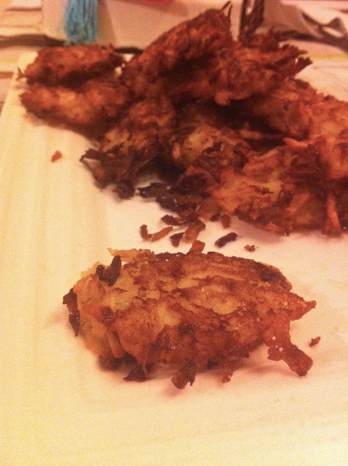 Se pelan y lavan las patatas. Después de dejarlas bien secas se rallan y se mezclan con el huevo batido y la cebolla. Una vez que están bien mezclados estos ingredientes, hacemos bolitas con dos cucharas y las vamos echando en una sartén con aceite a fuego medio-fuerte hasta que se doran por los dos lados (no más de dos minutos en total).